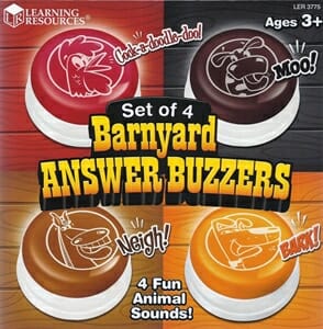 My friends over at Learning Resources sent me some products to review…and I have to say the best part was that I got to choose what I wanted to try out. The first thing I saw was the set of Barnyard Buzzers. How cute are these??
