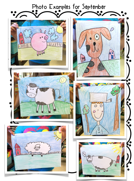 I also added another month and finished August’s drawings in my Directed Drawings for the Entire Year Pack. Here are the examples of September’s (yes, there are two cows, I couldn’t resist putting Maggie’s on there!) Looking for another end of year craft? Click HERE!